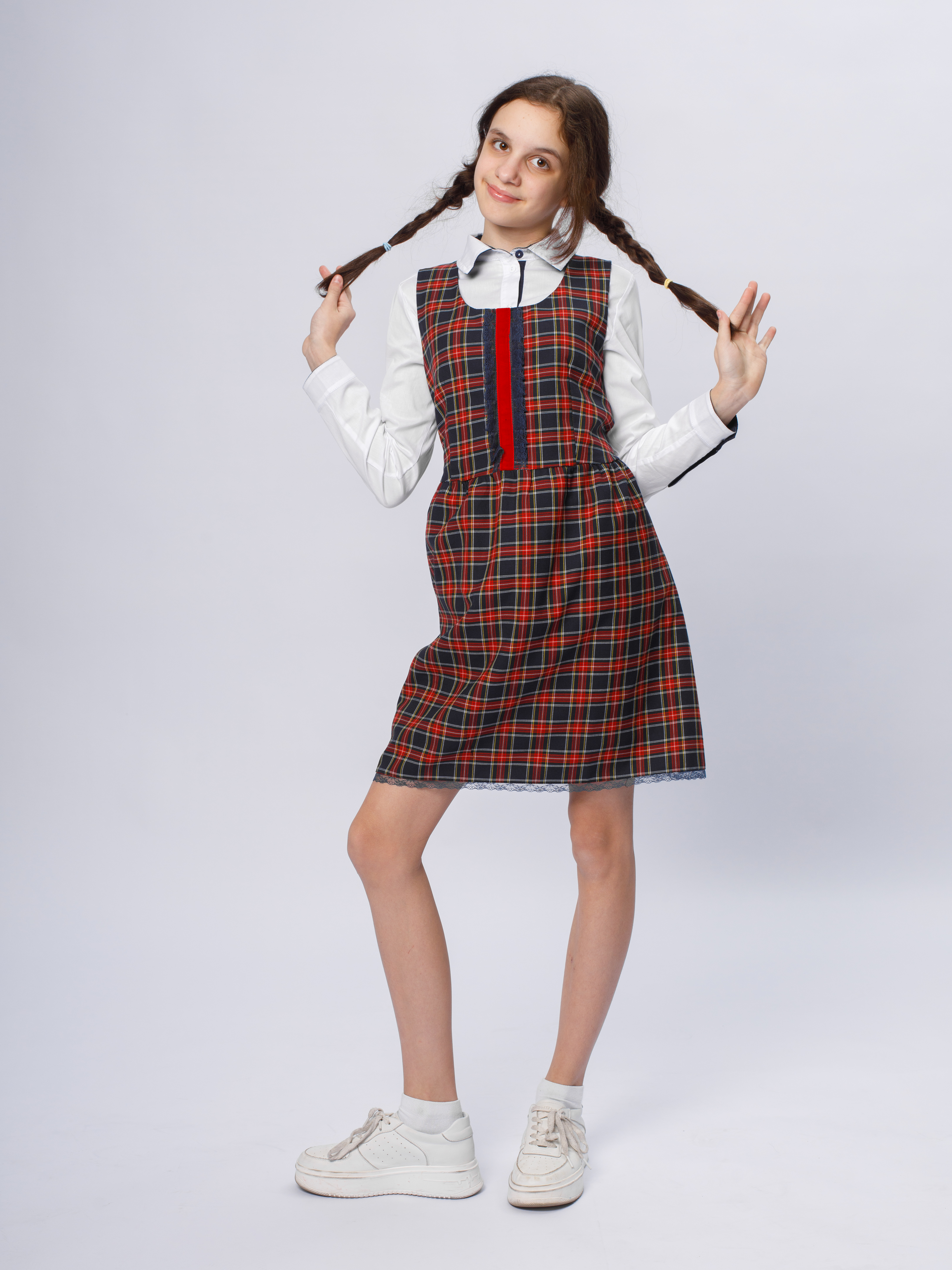 Прямой или слегка А-силуэтный сарафан из плотного трикотажа, твида или шерсти — главная героиня школьного гардероба последних лет. Его магия — в абсолютной неуязвимости. Он прощает ранние подъемы, сочетается с любым низом и верхом, трансформируется от строгого образа с рубашкой до уютного со свитшотом. Цвет-фаворит — глубокий темно-синий, графитовый, бордовый или классический черный. Это инвестиция, которая окупится сторицей.