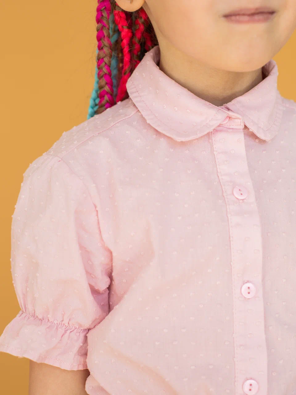 · Для девочек: Мягкие блузы из хлопка с викторианским жатым воротником, плиссировкой на груди или элегантными буфами на рукавах. Пастельные тона (экрю, лавандовый, нежно-голубой) или классический белый.