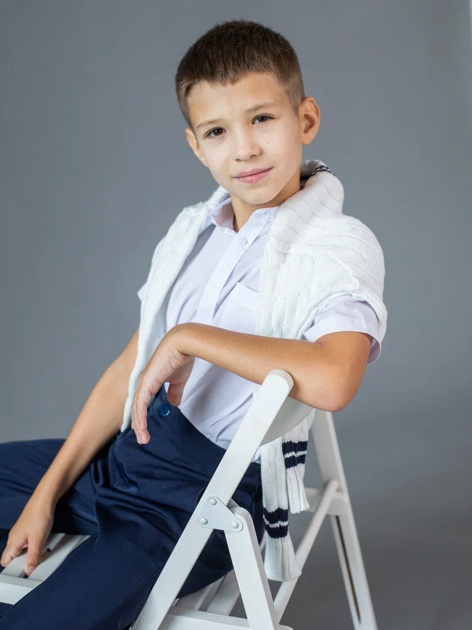 · Для мальчиков: Пиджак-блазер с облегченной плечевой линией, без жестких ватных плечиков. Акцент на талии для создания собранного силуэта. Брюки — straight fit или слегка зауженные, с технологичной тканью, не теряющей форму после дня за партой.