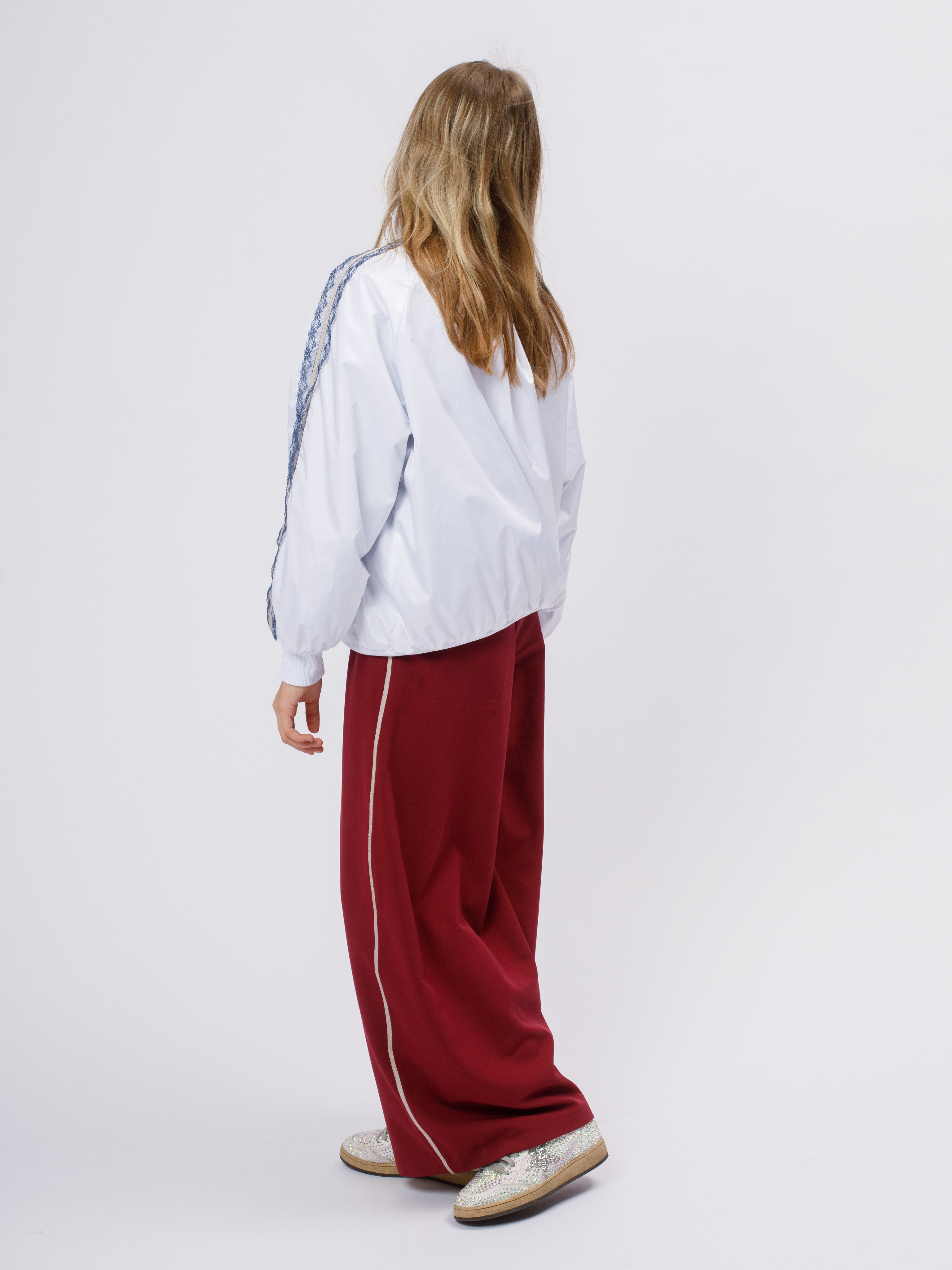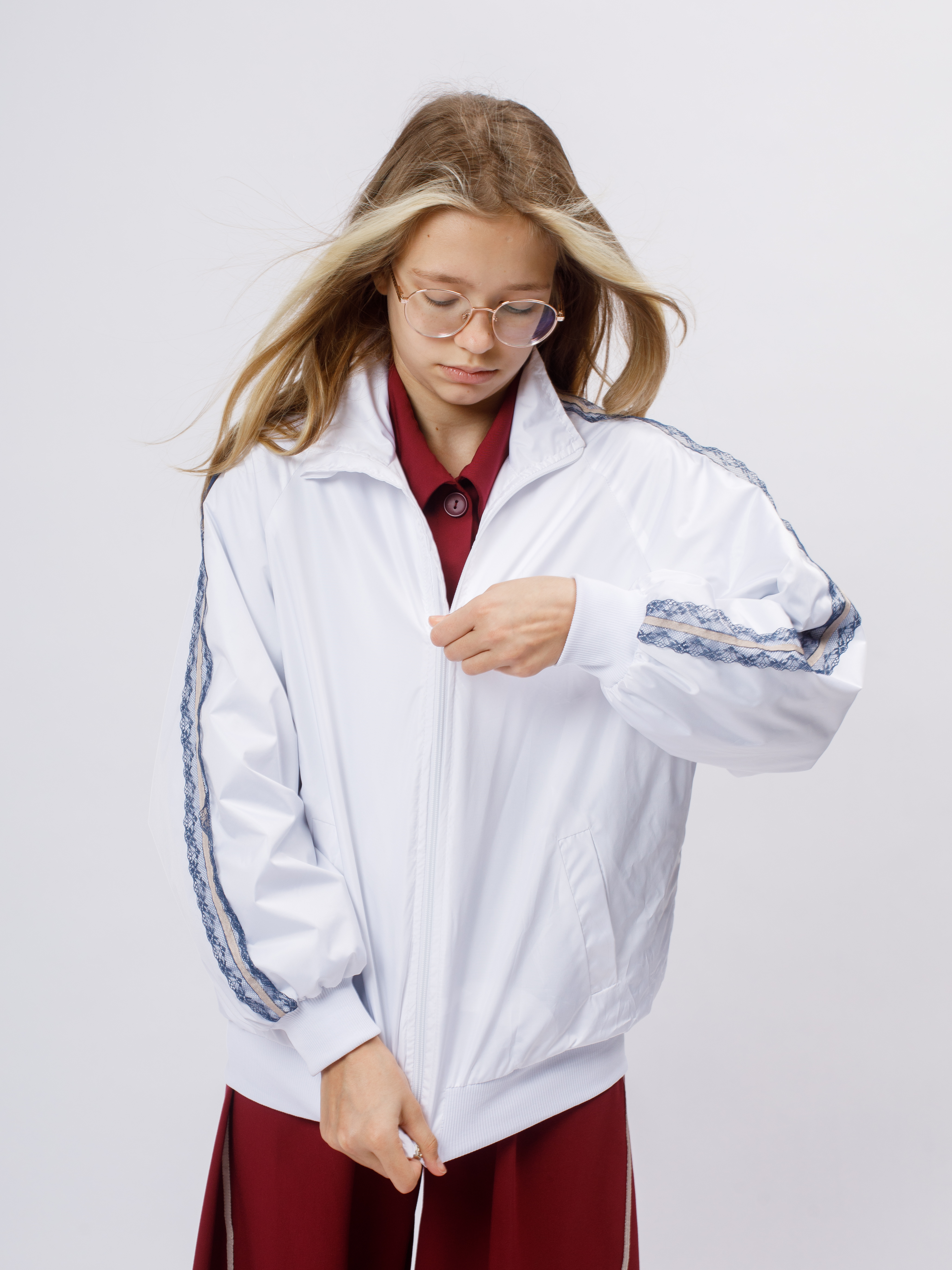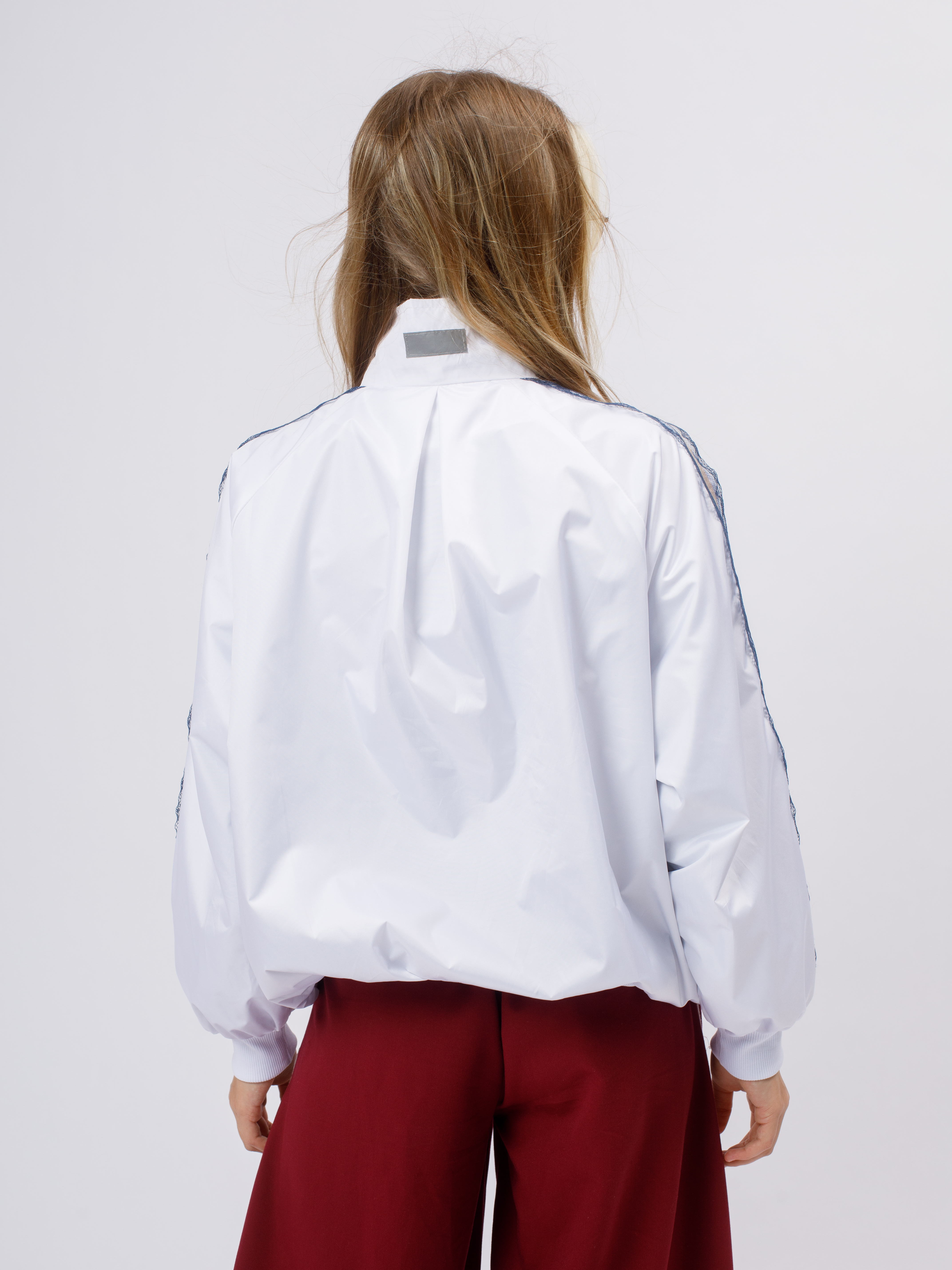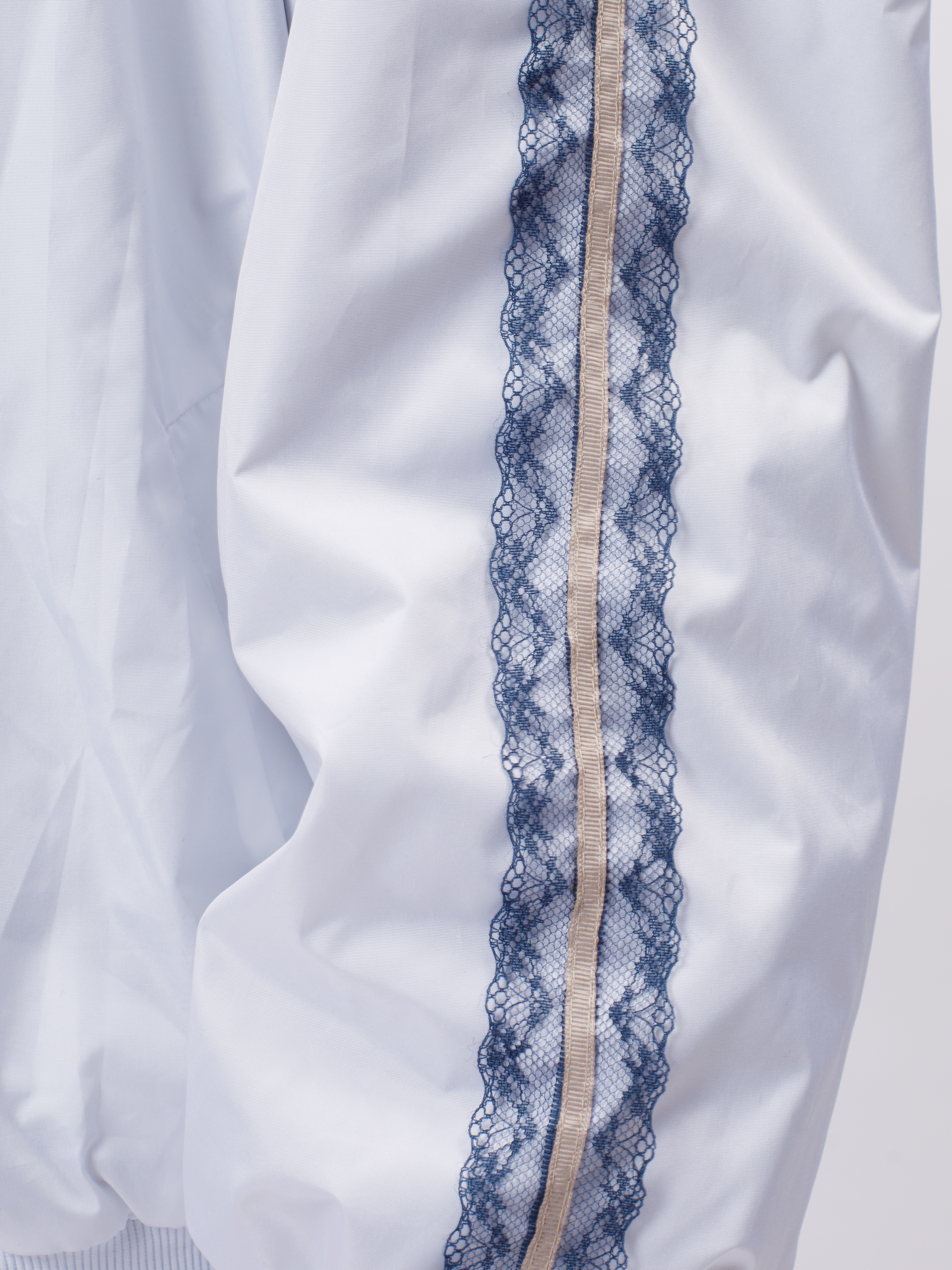Стильная демисезонная ветровка без утеплителя в популярном корейском стиле. Модель сочетает в себе городской шик и функциональность благодаря нежному кружевному декору по рукавам (лампасы).
