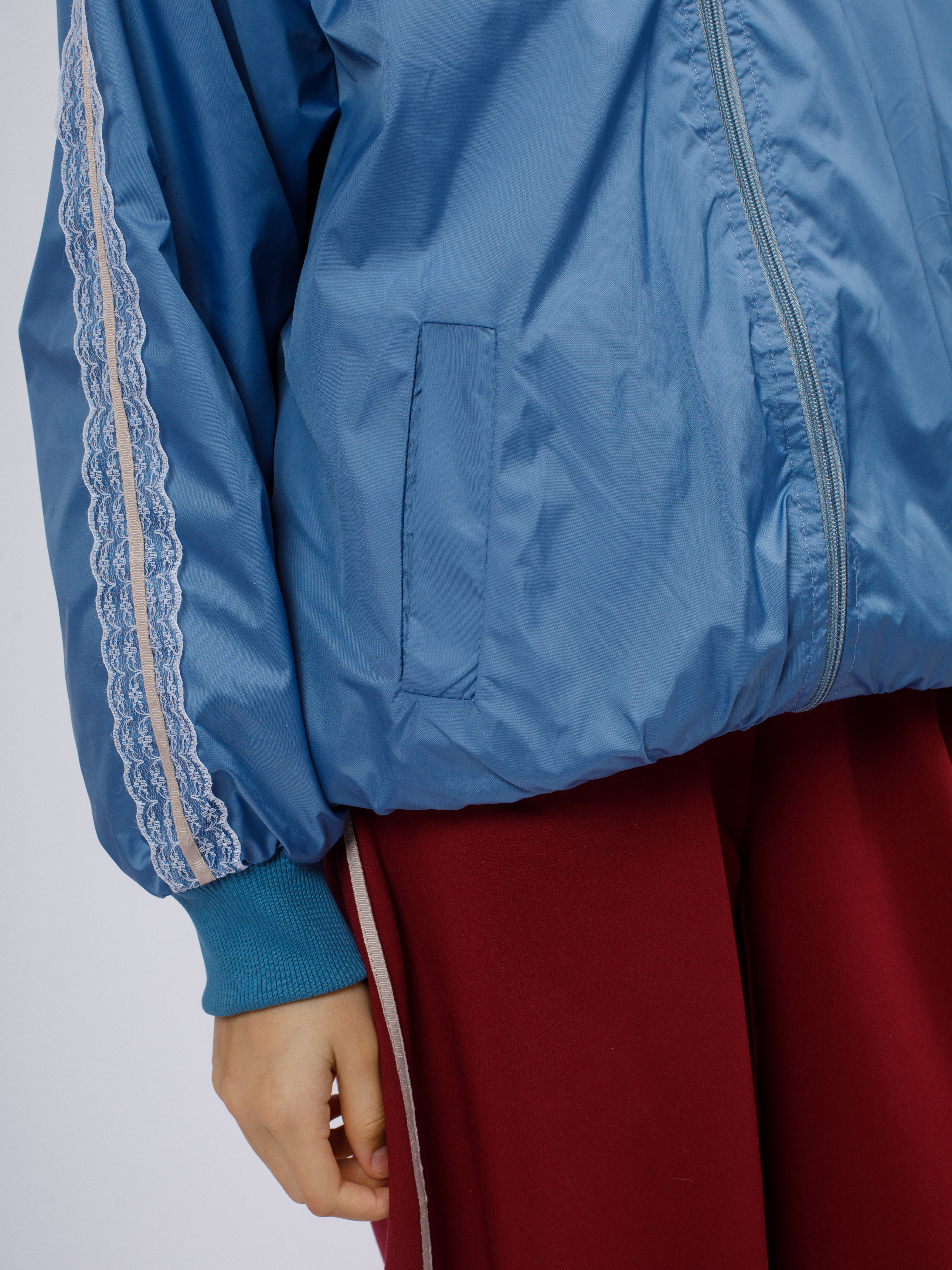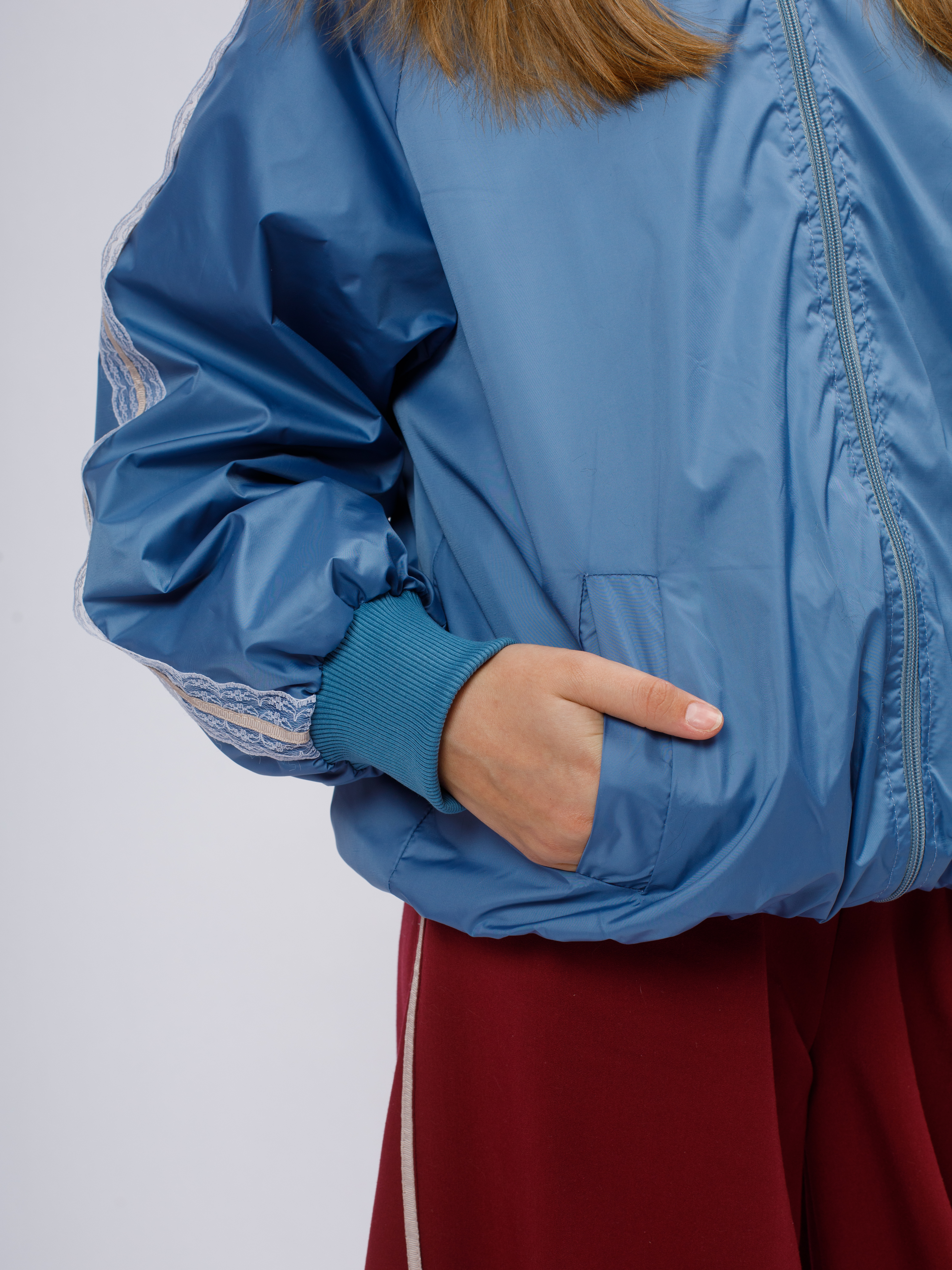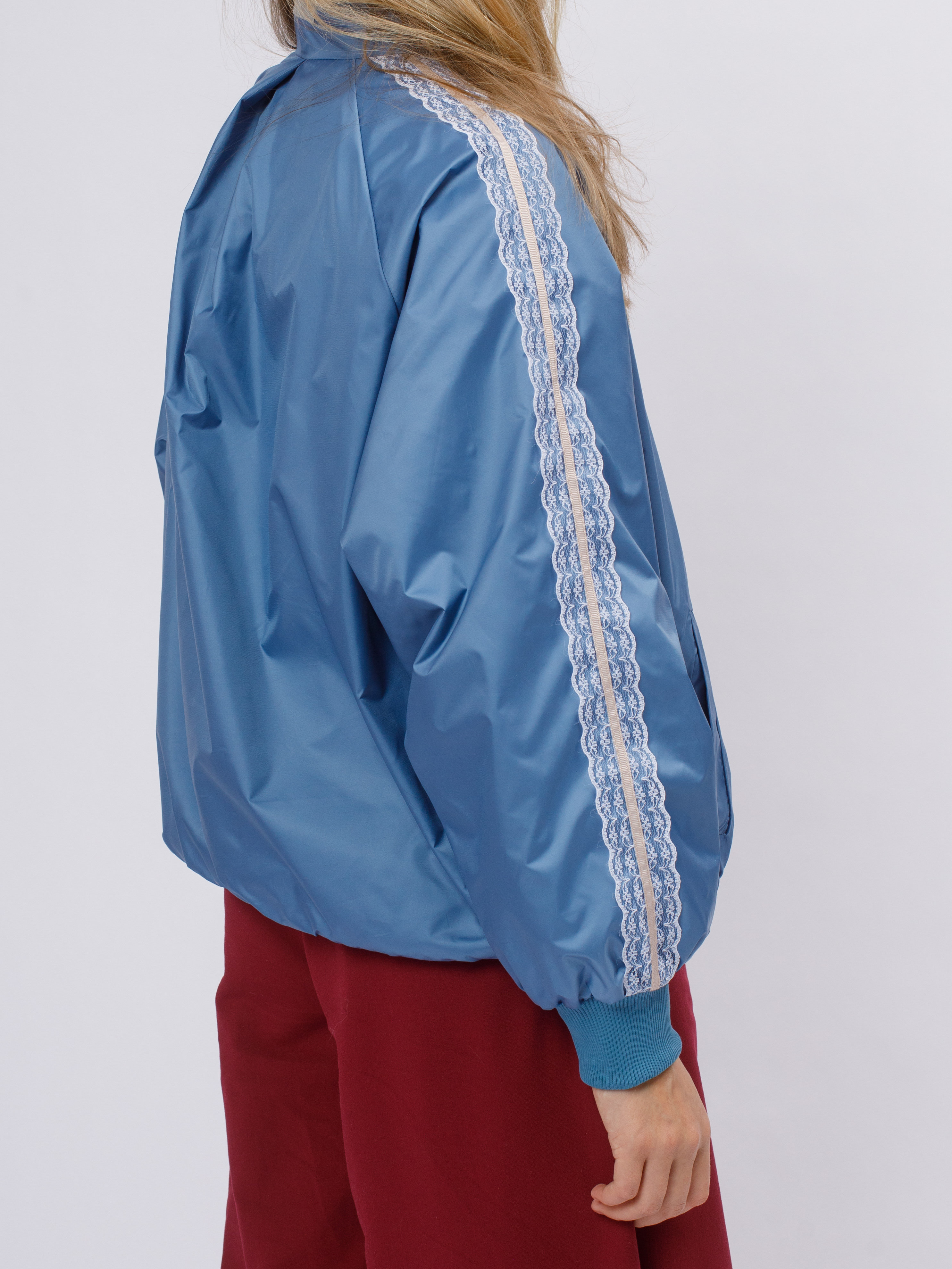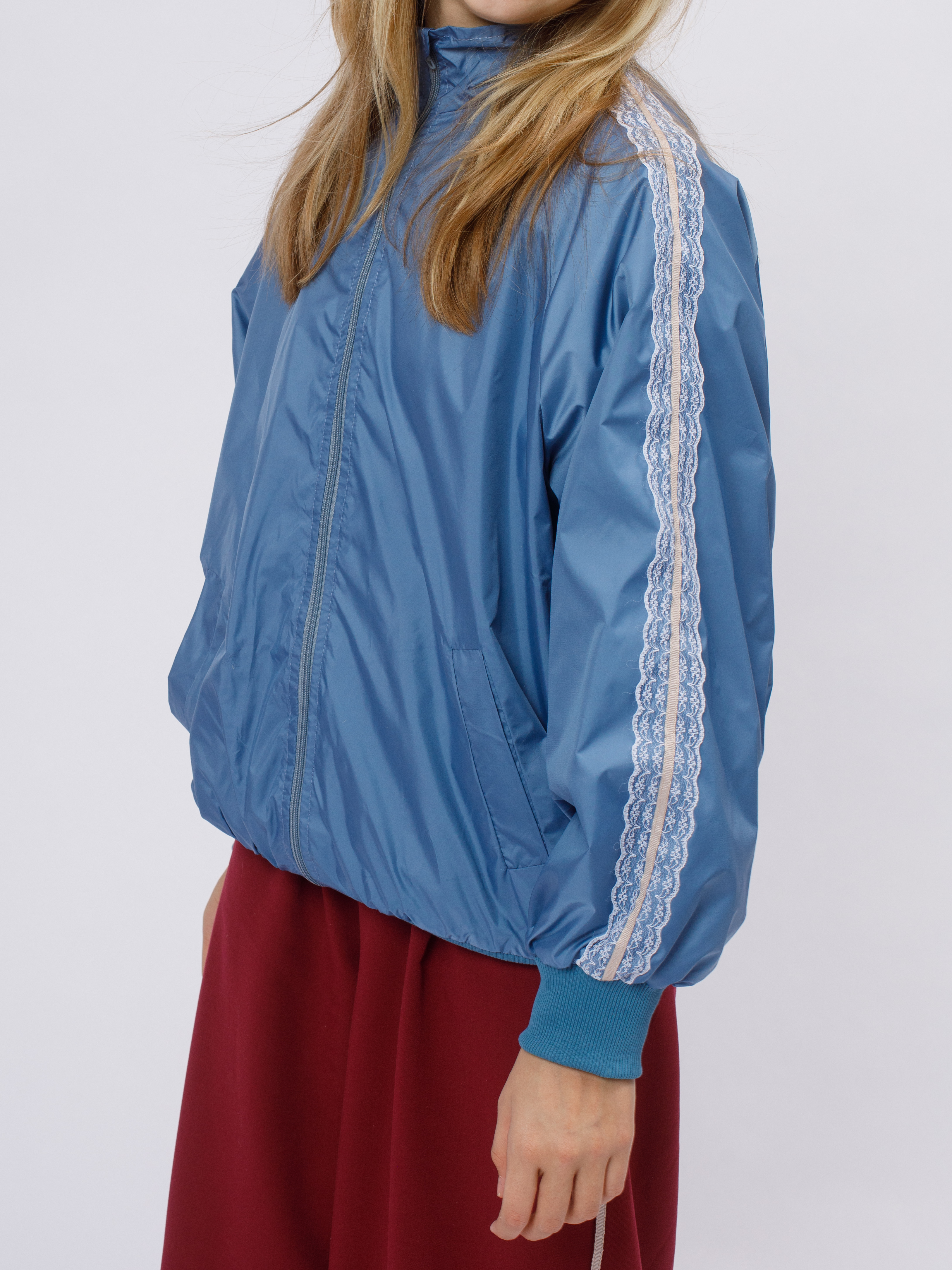 Стильная демисезонная ветровка без утеплителя в популярном корейском стиле Y2K. Модель сочетает в себе городской шик и функциональность благодаря нежному кружевному декору по рукавам (лампасы).