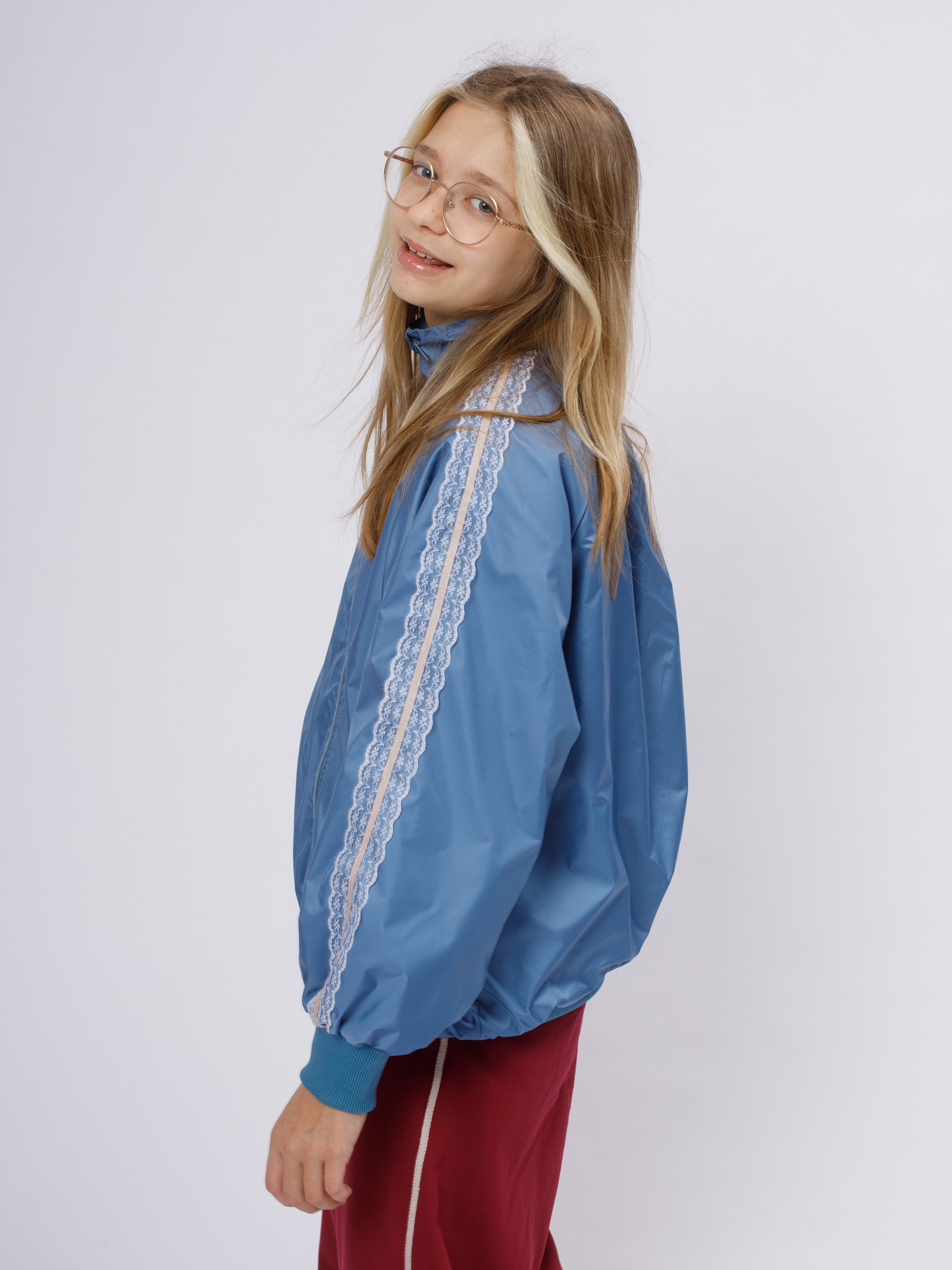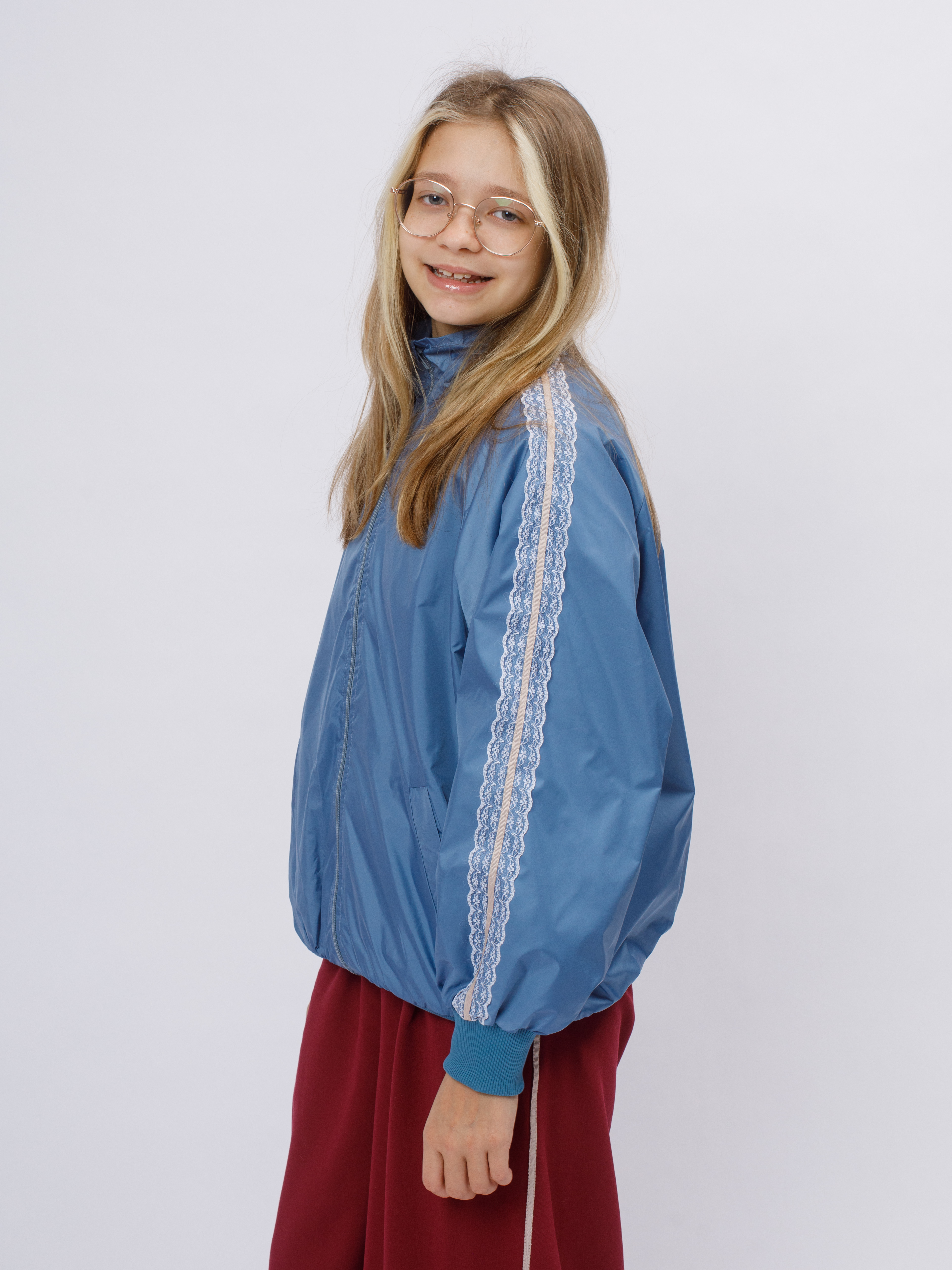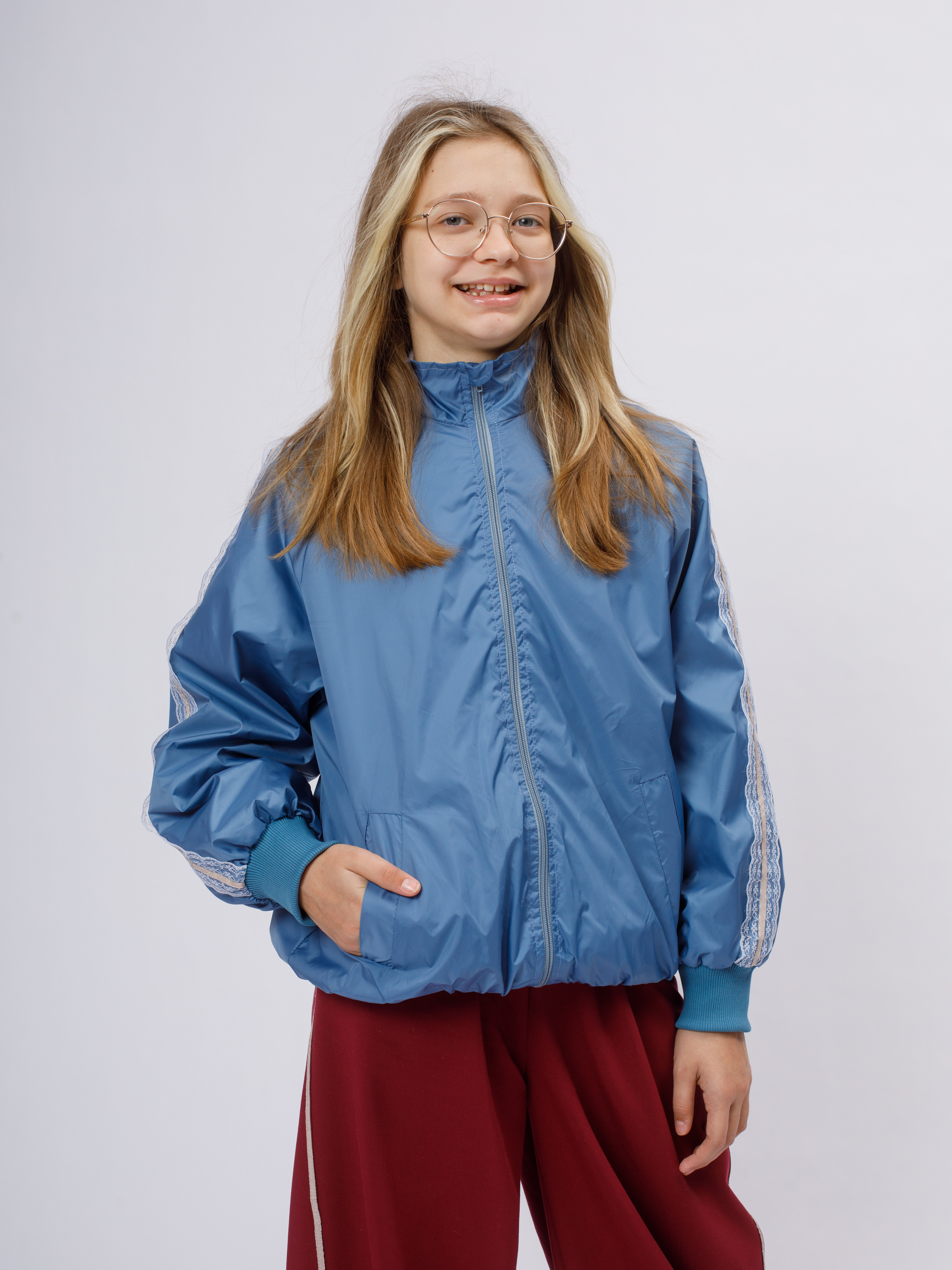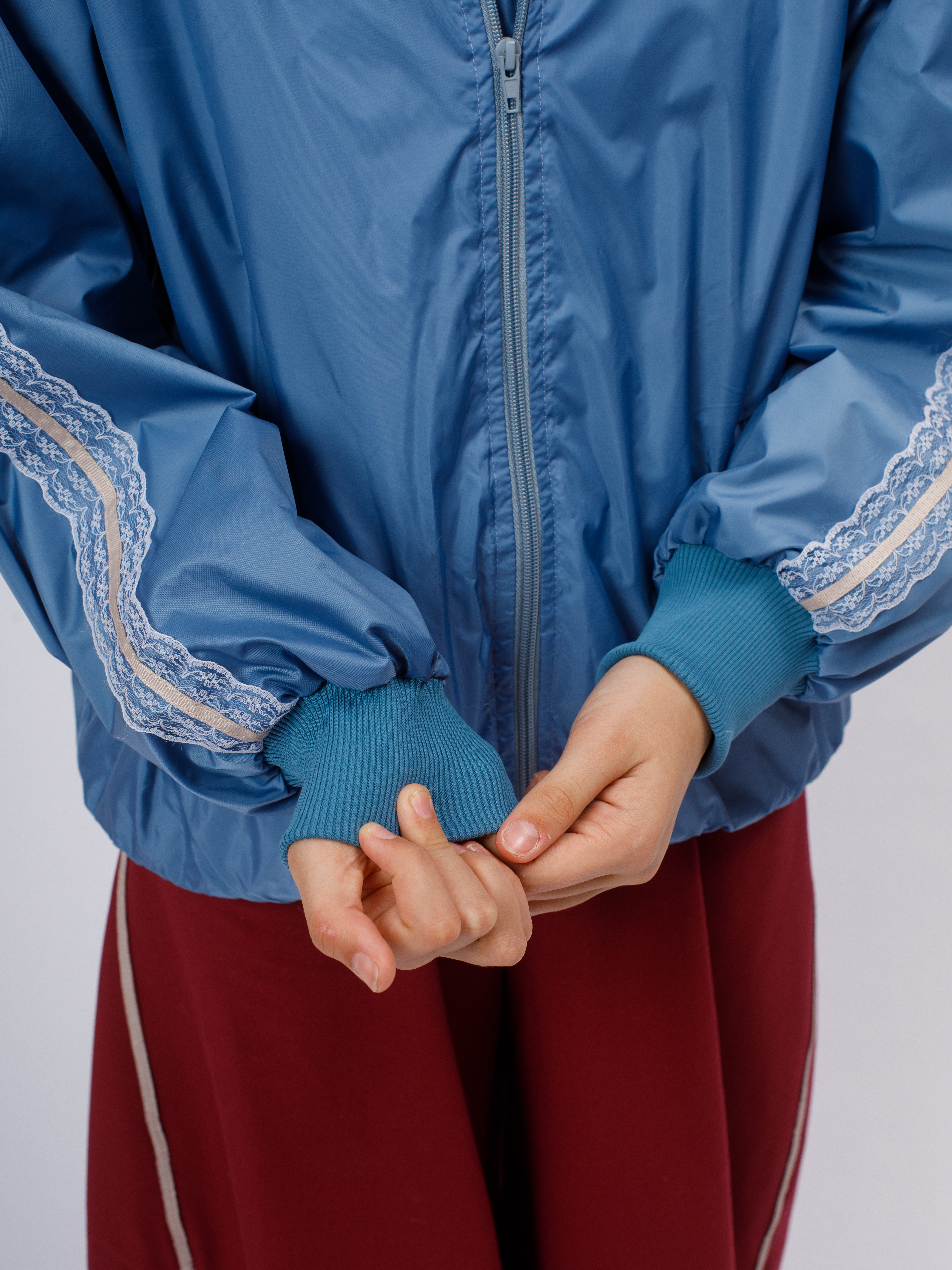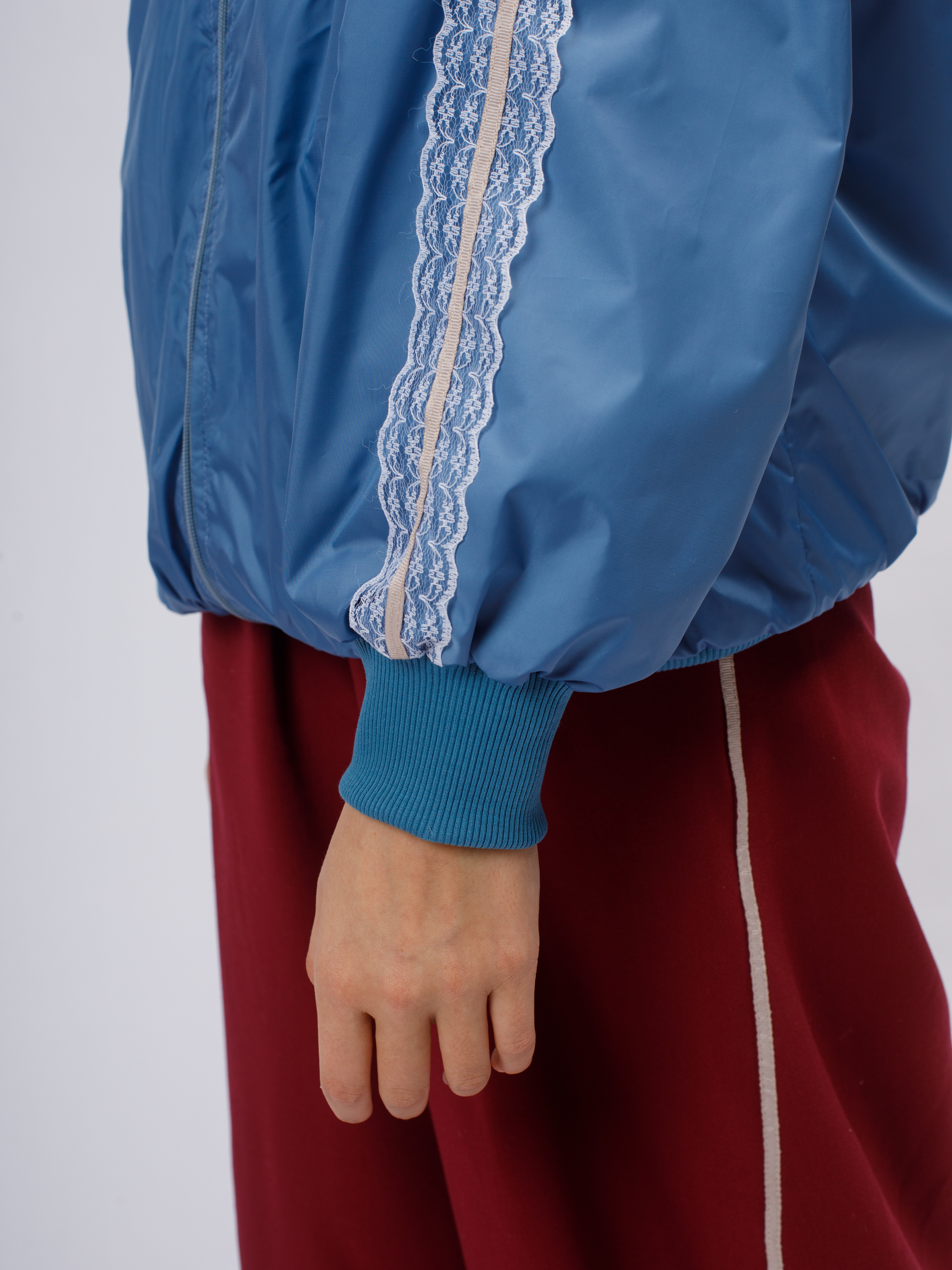 Стильная демисезонная ветровка без утеплителя в популярном корейском стиле Y2K. Модель сочетает в себе городской шик и функциональность благодаря нежному кружевному декору по рукавам (лампасы).
