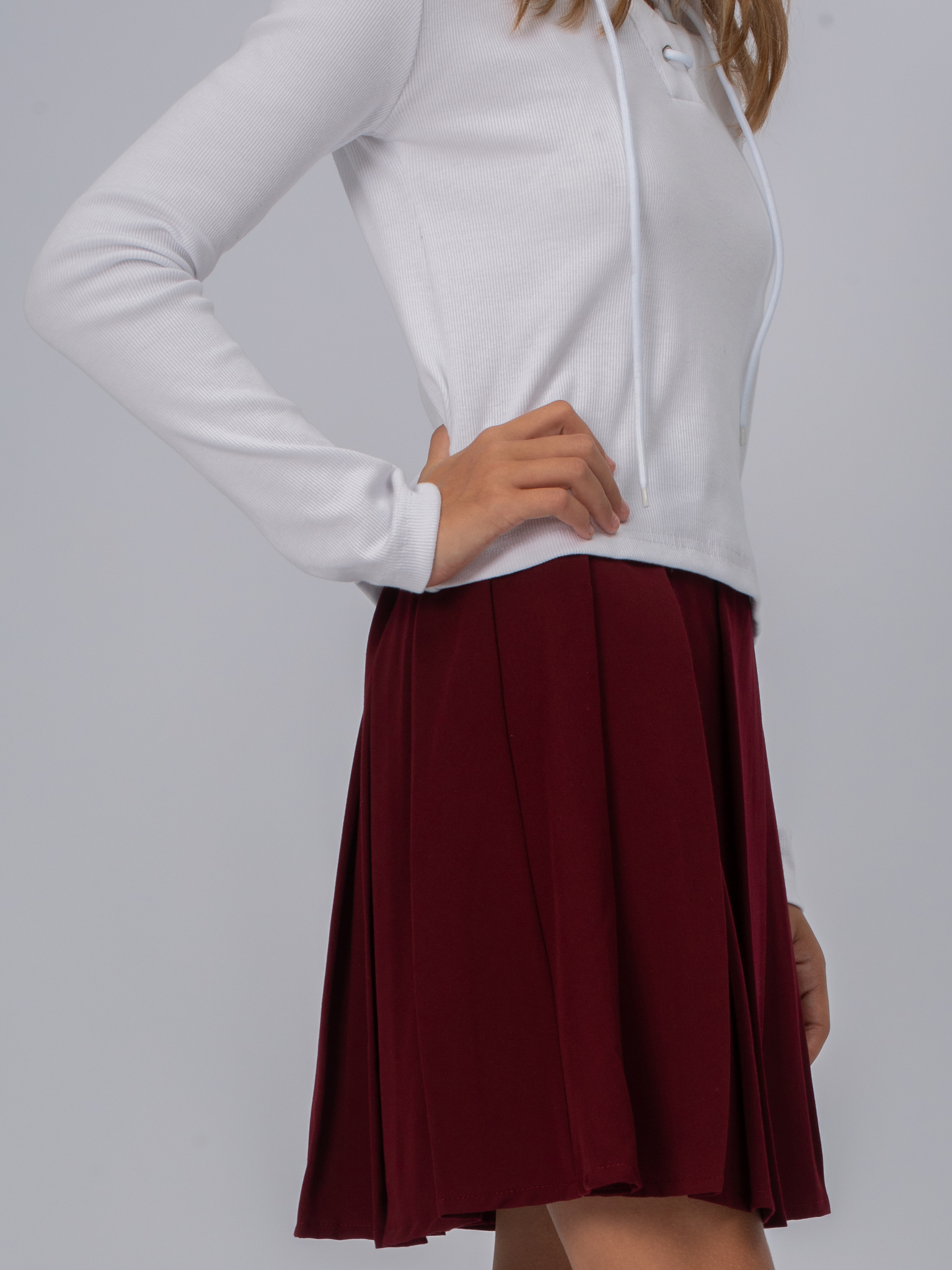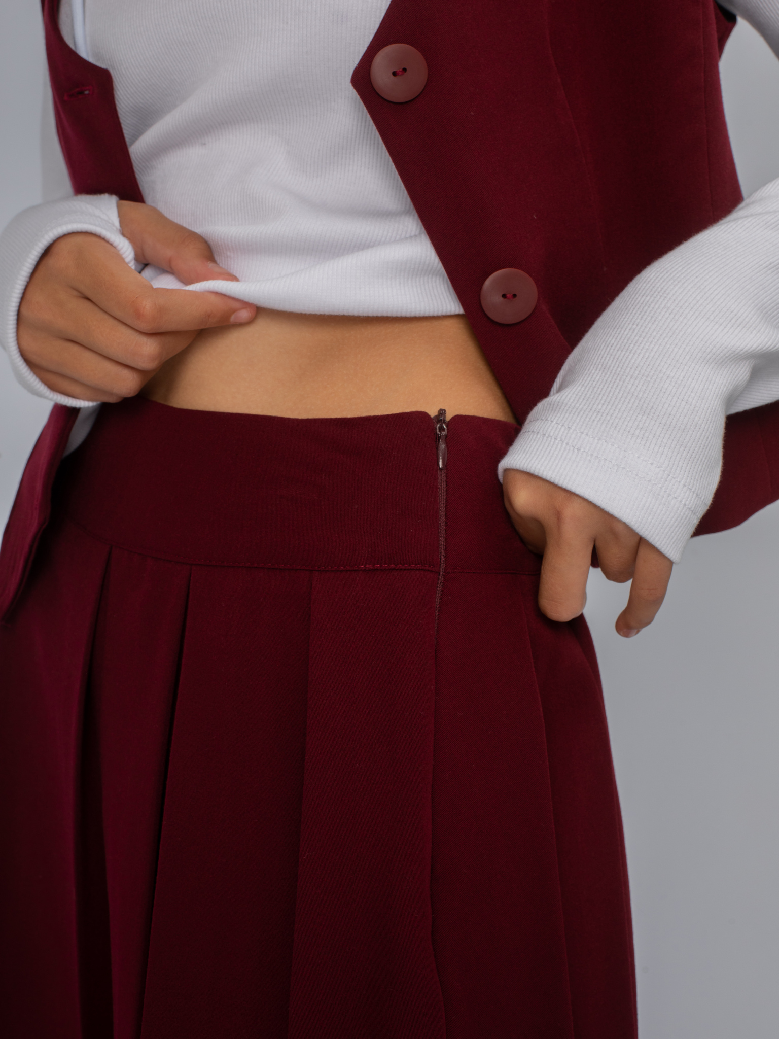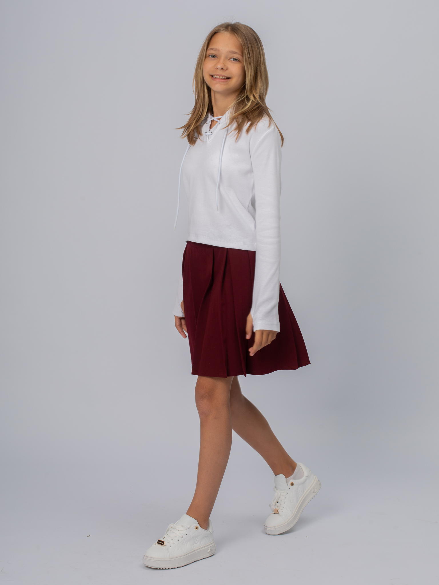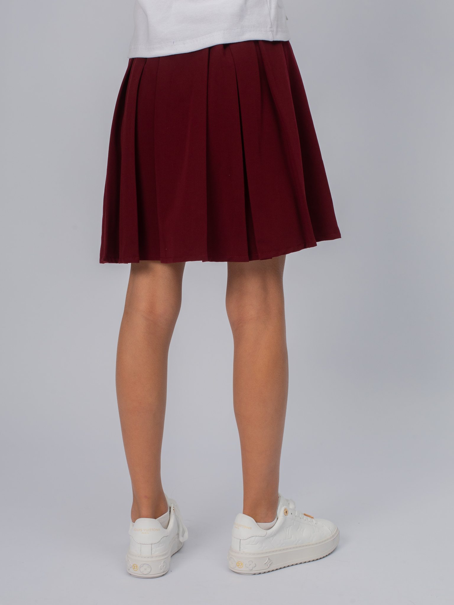 Плиссированная юбка в школу для девочки. На кокетке с регулированной резинкой по синке. Потайная молния в боковом шве. Длина выше колена.