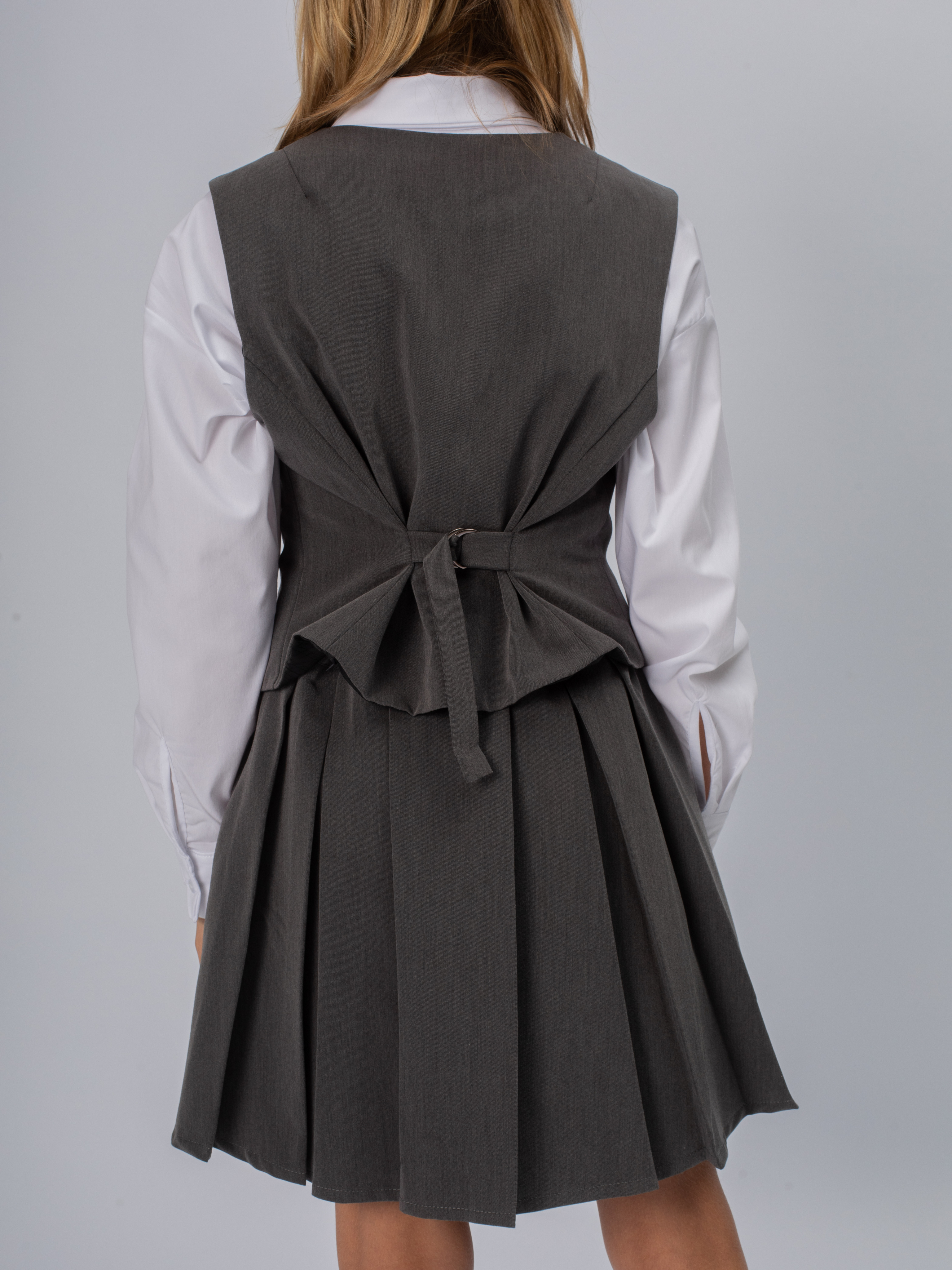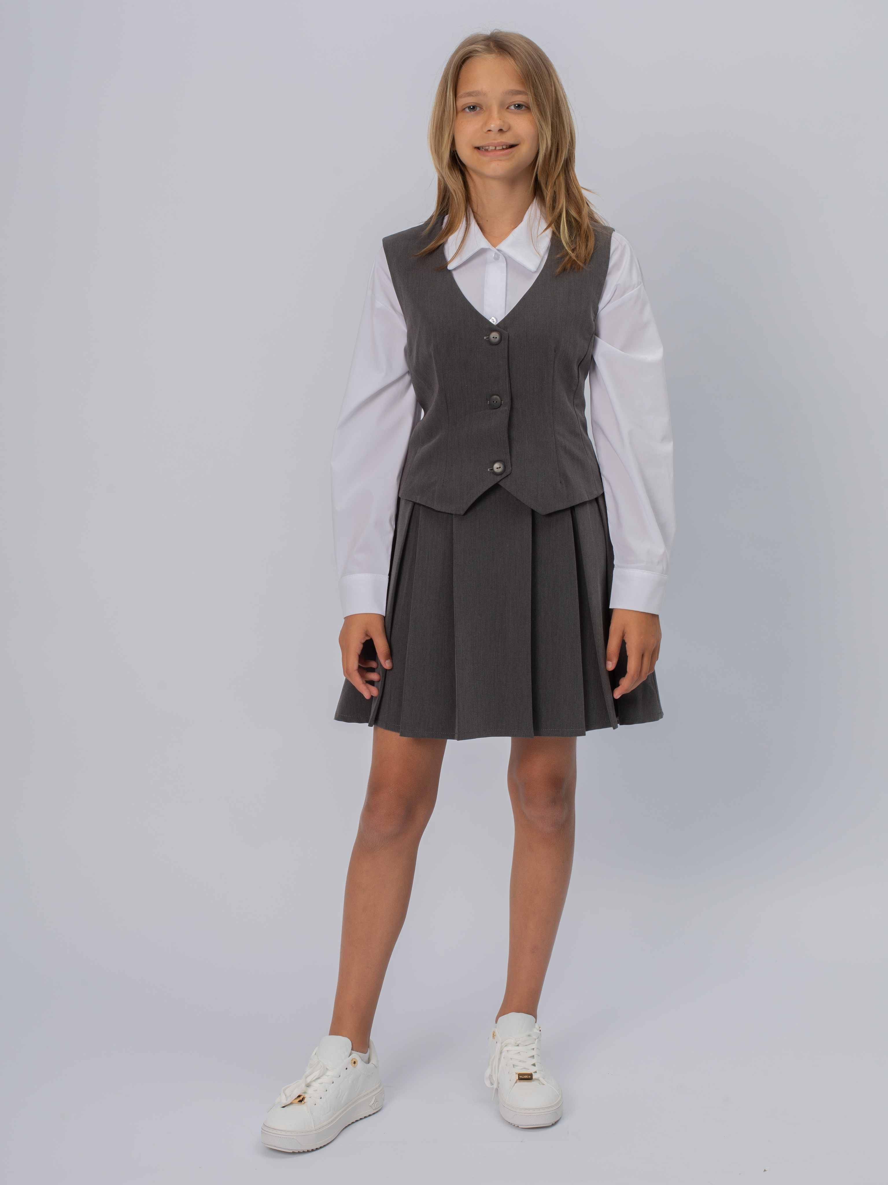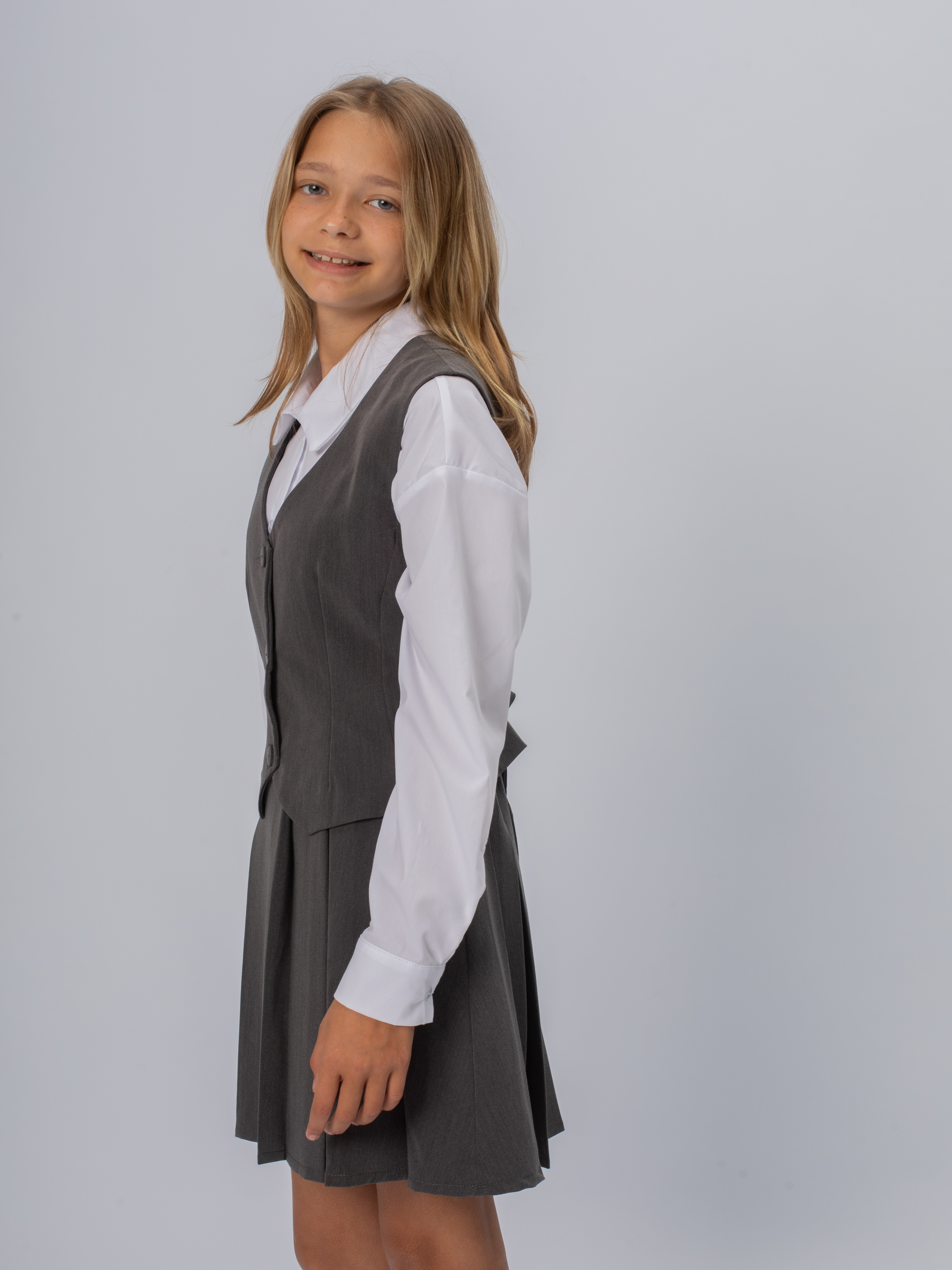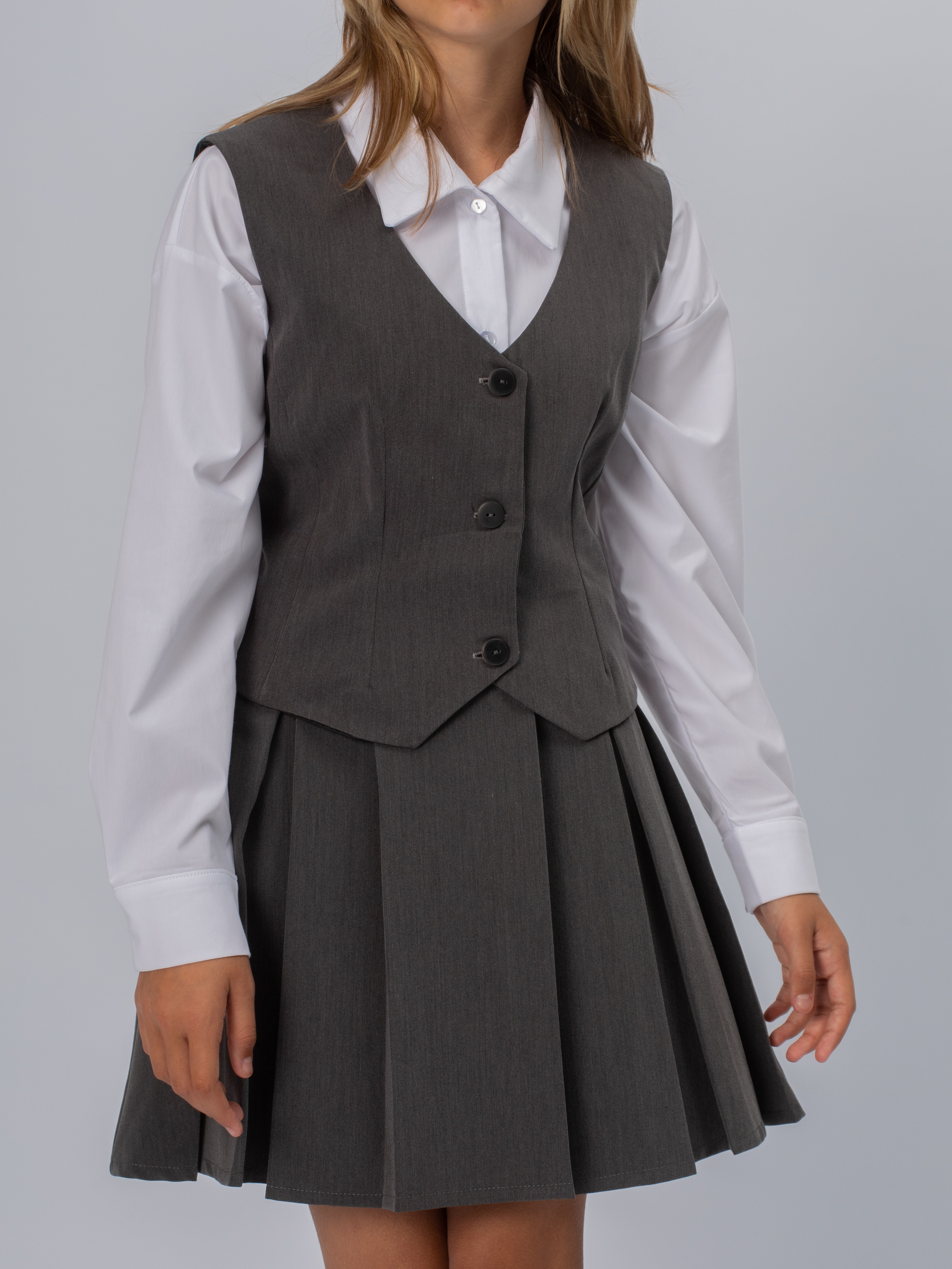 Школьный жилет на пуговицах серый. Школьный жилет KristiKlo - это стильный и практичный выбор для юных модниц. Модель выполнена в классическом сером цвете, что делает его идеальным дополнением к школьной форме. Жилет имеет V-образный вырез горловины и однобортный покрой, обеспечивая удобство и свободу движений. Изготовлен из дышащего материала с добавлением вискозы, спандекса и полиэстера, что гарантирует комфорт в течение всего учебного дня. Жилет легко регулируется по размеру, что позволяет добиться идеальной посадки.